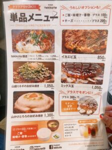 さっそくtekkoteさんイチオシのtekkote焼き1250円(税込)とクワトロチーズもんじゃ1390円(税込)を注文しました。