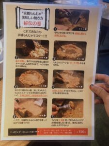 もんじゃ焼きの方は、お店焼きと自分焼きが選べて自分焼きの方が少しお安くなっております。