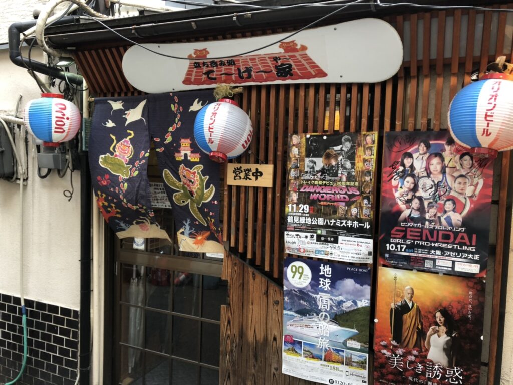 進んでいくとオリオンビールの提灯とプロレスのポスターが貼ってあるのですぐわかります!!