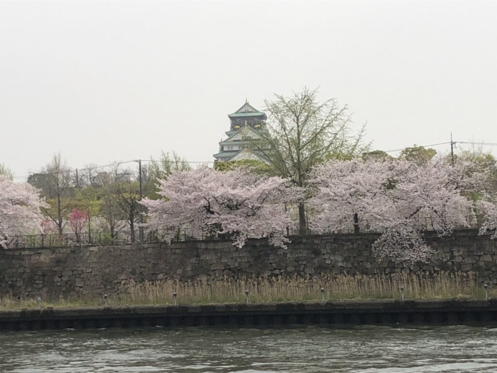ytvから大阪城公園につかながるところは川の両岸に綺麗に桜が咲いています。