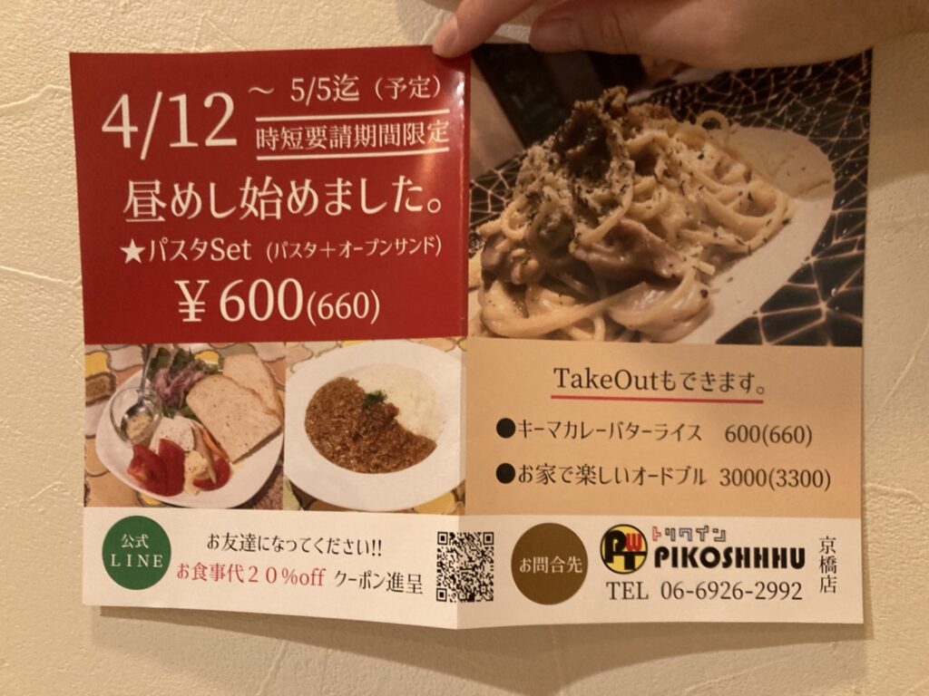5/11まで時短要請期間限定の昼めしのパスタセットも660円でやってます!