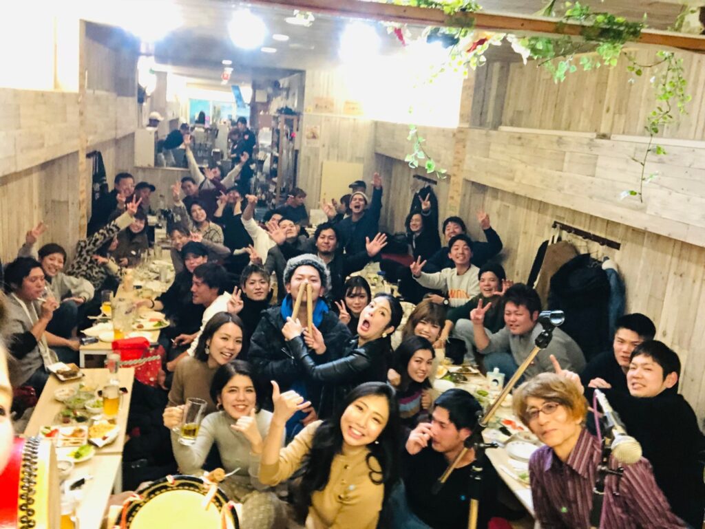 コロナ前は座敷で沖縄ライブを聴きながらこんなにたくさんの人たちが集まっていました。