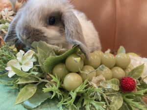 この子は、エンちゃんという名前でドワーフホトという種類のうさぎちゃん。目の周りが黒く縁取られてて大きいお目々が更に大きく!