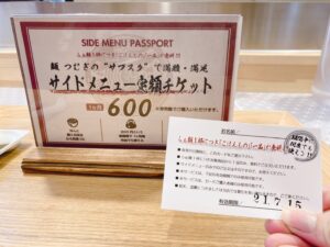 因みに、初めて訪れた方限定でらぁ麺一杯につき一品もしくは丼物が無料で注文できるサブスクリプション券を配布していました!(通常、600円で購入可能です)