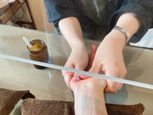 ネイルが完成したら自家製のアロマオイルでハンドマッサージをして頂きます。