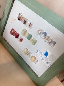 今回は平日限定のデザインジェルネイル5000円(税込み)だったのでボードに紹介されているデザインのものを選んでお色だけ青ベースに変更して施術してもらいました!