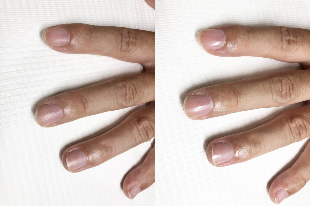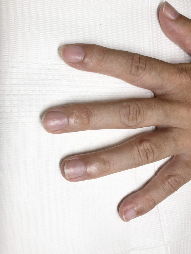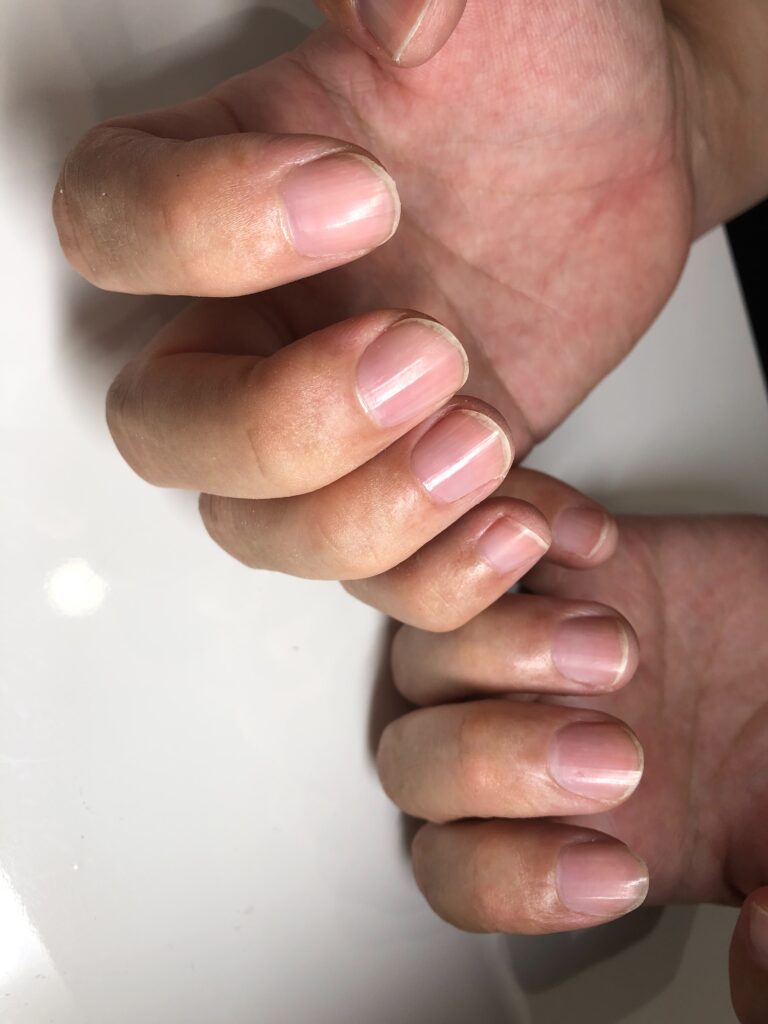 あまり綺麗なものではないのですがバスコ1号の施術前の爪を見てください。