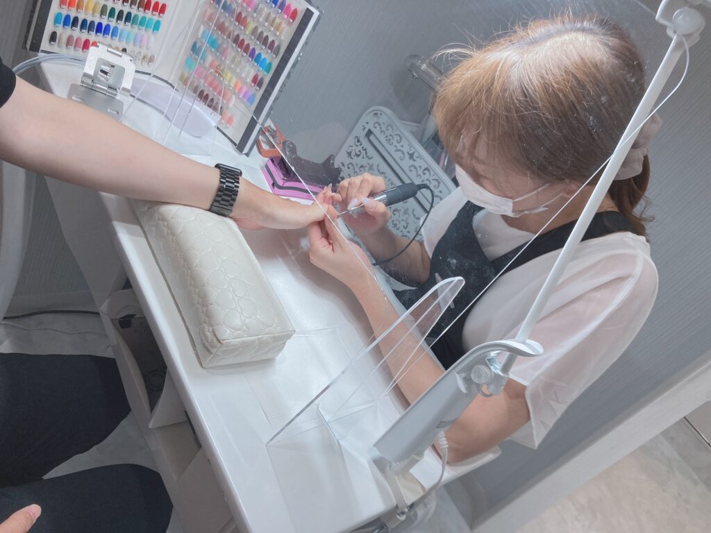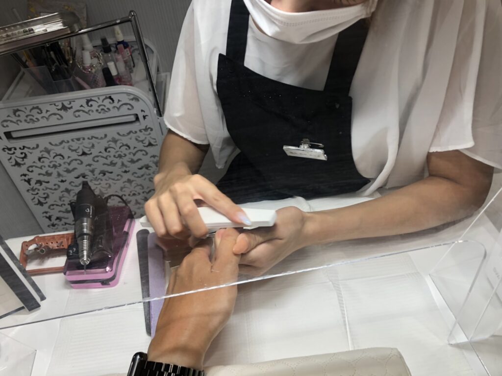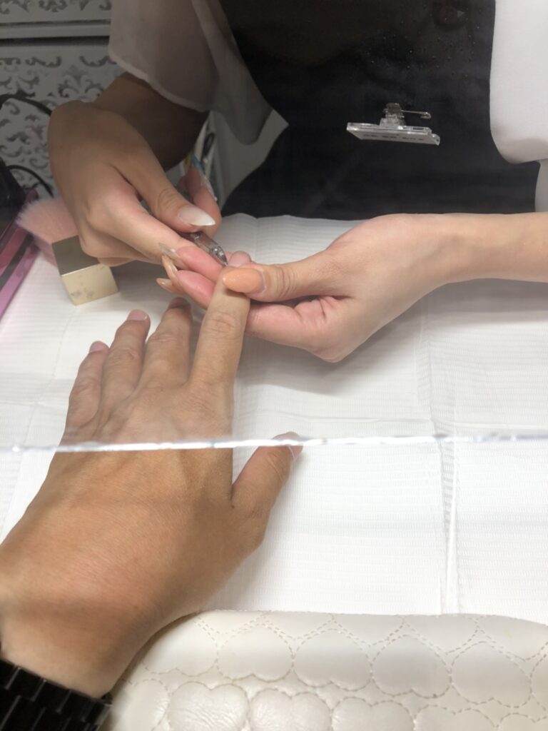 最初は爪の甘皮を切ってもらいます。甘皮っていうのは爪の付け根のとこにあるやつです。