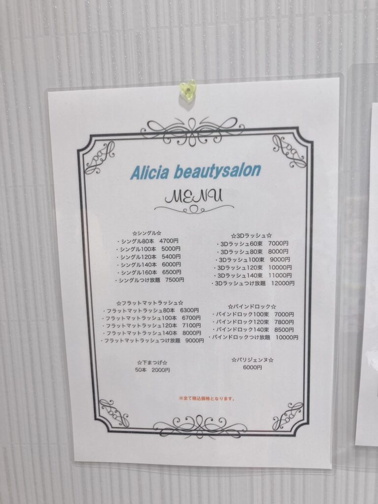 インスタグラム https://www.instagram.com/alicia.beautysalon/?hl=ja