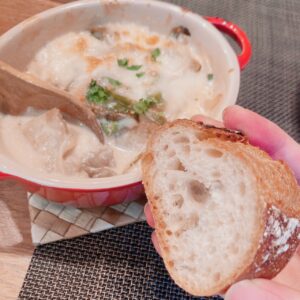 柔らかいパンはそのまま食べても美味しいですが硬めのフランスパンなんかは少し焦げ目をつけてBBQのアヒージョなんかにつけて食べると格別。