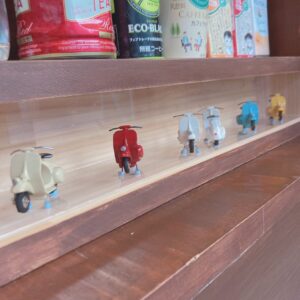 店内には、安藤さんが好きなスクーターの模型がアチラコチラに