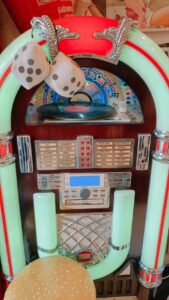 レコード台があったり瓶のコーラを冷やす冷蔵庫?など映画の中に出てきそうなものがありオシャレだなと思っていると今でも使っているとのこと...しゅてきだー!!