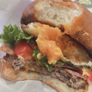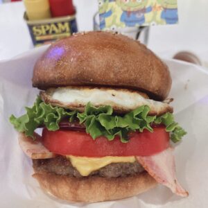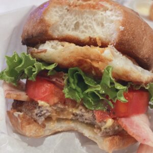 カフェなどで出てくるモーニングのパンケーキから着想を得てバンズにメープルを少し塗ったところこれが大成功だったらしく今では13Dinerさんでの看板商品になっています。