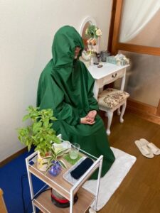 施術内容としては、全身のアロママッサージをメインに行い、よもぎ蒸し、コスメ作り、音浴があります!