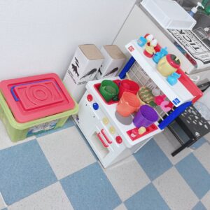 小さいお子様の学習スペースでは、ミニオンの可愛らしい装飾やおままごとキッチンなども備わっています。