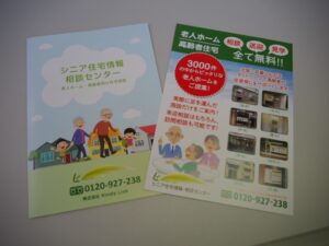 こちらはいわゆる老人ホーム、高齢者住宅を探す人のお手伝いをしております