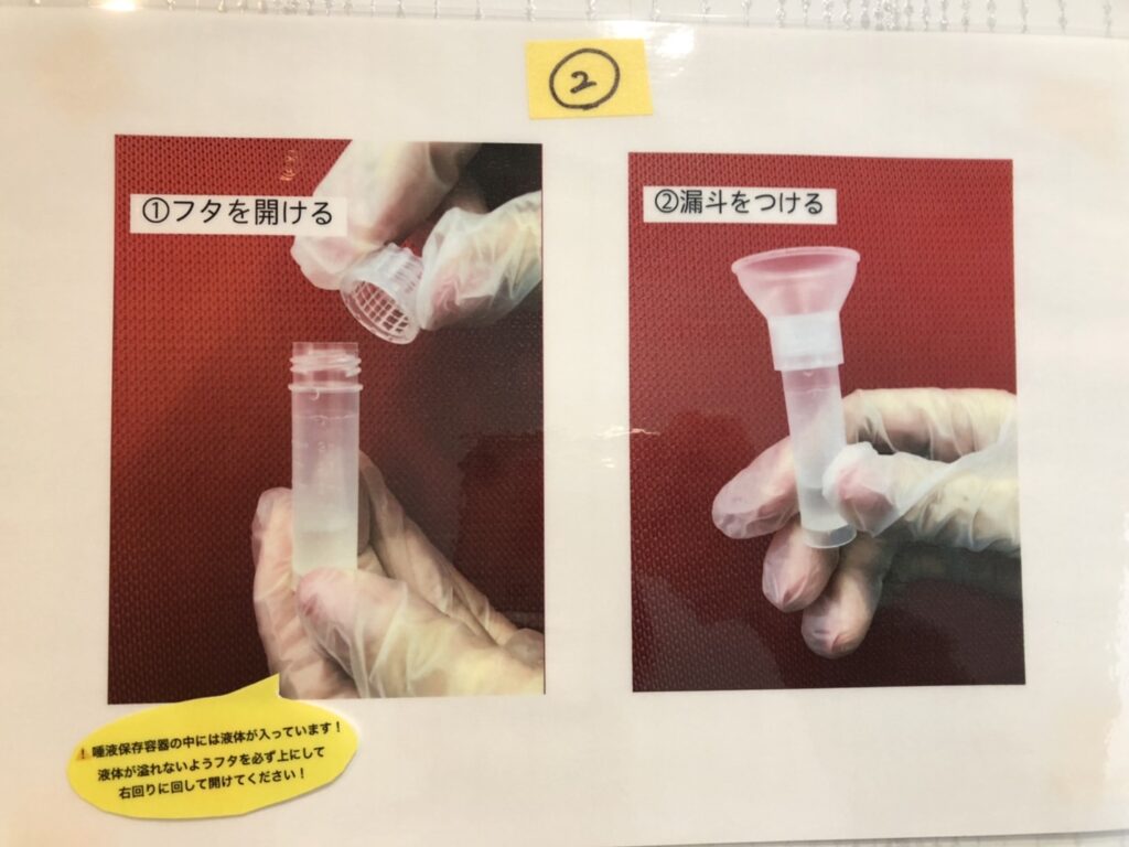 ここでの検査は唾液をとって検査所に送るタイプの検査です。