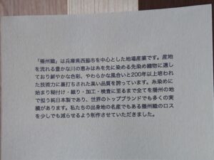 ↑お二人の地元の名産品を広めるために取り入れてるようで、播州織は某有名ブランドの生地も数多く手掛けているようですよ!