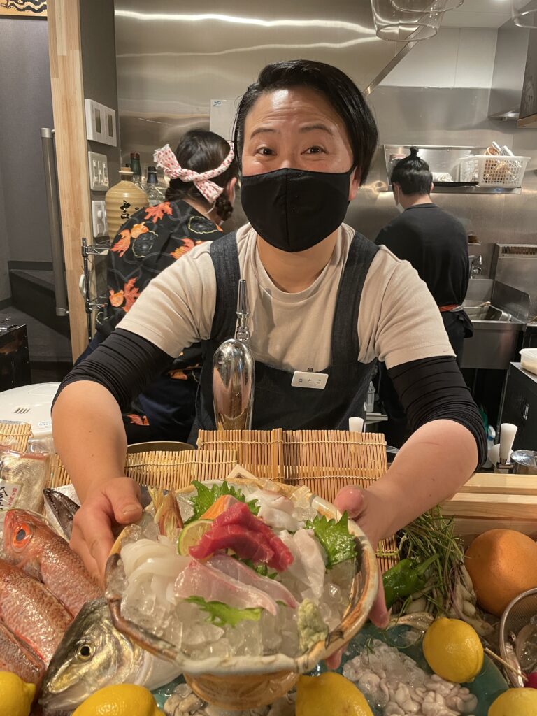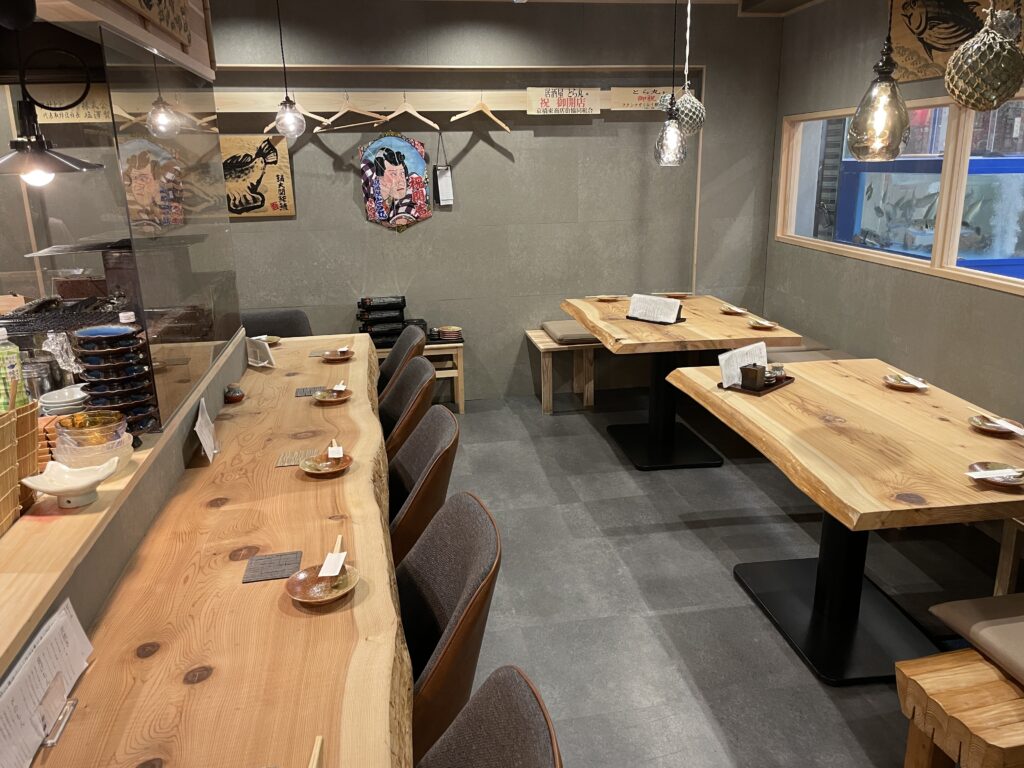 カウンター席は魚をさばいてるところだったり、盛り付けたりしてるところが見れるので一人できても暇しません。