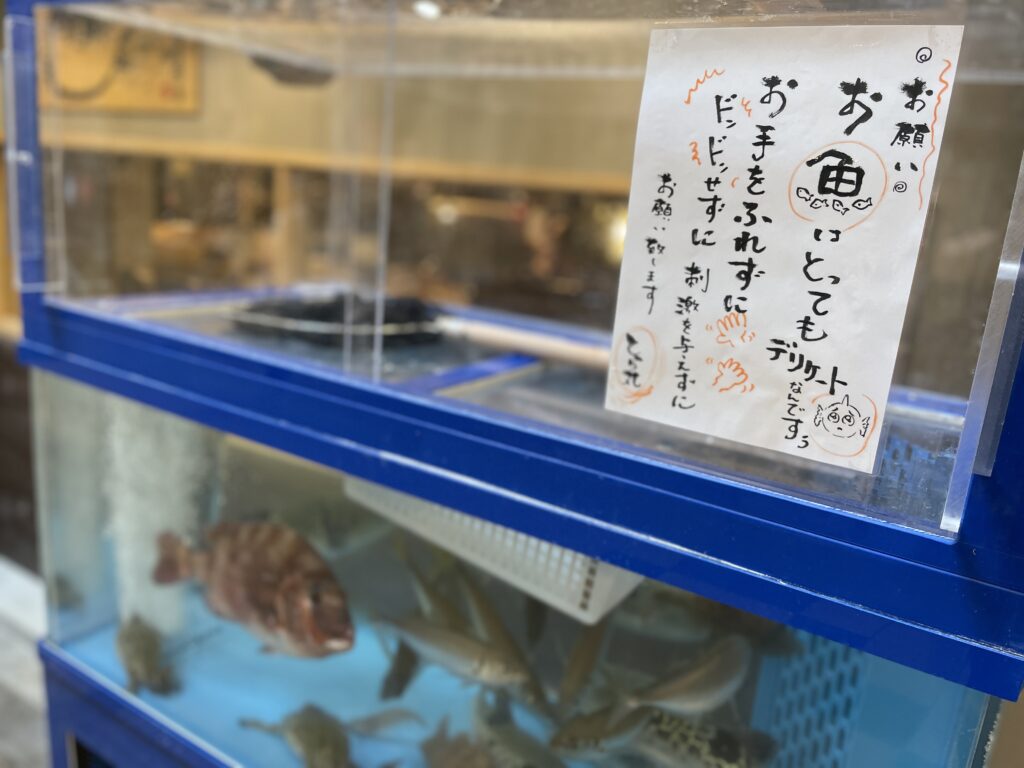 おっと!魚たちはデリケートなのでガラスを叩いたりはしないでくださいね!