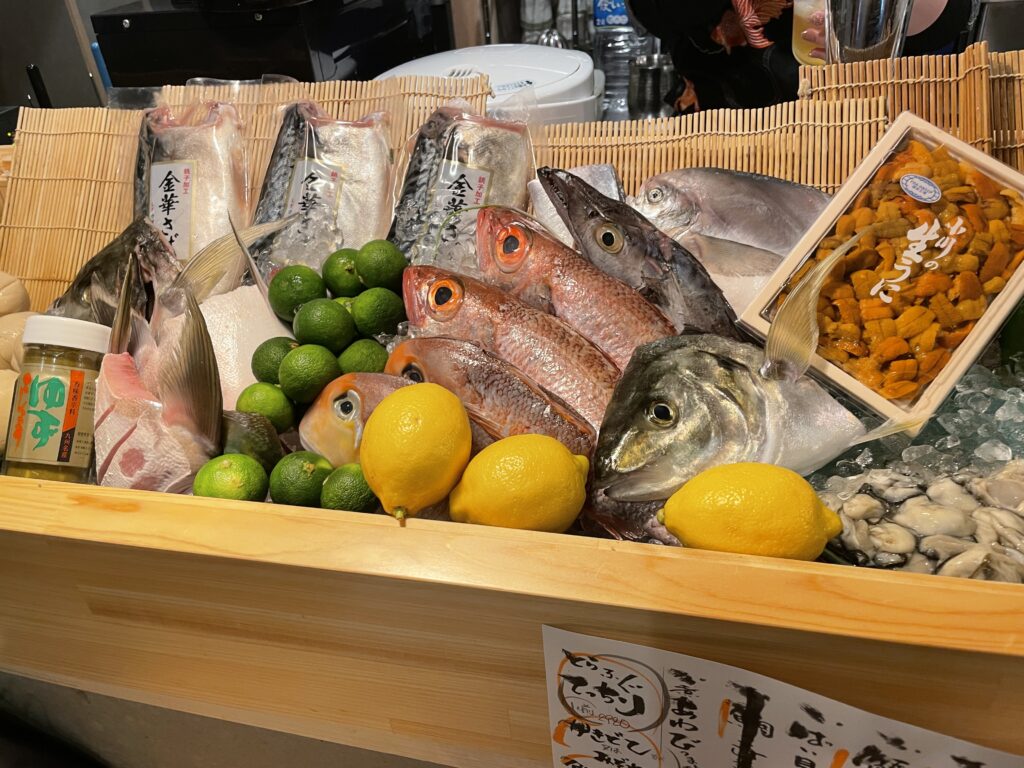 カウンターには新鮮な素材が並んでて食欲をそそりまくります!