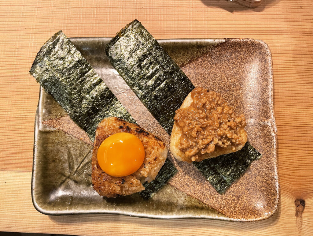 香ばしい焼きおにぎりにたまごと味噌が乗ってます!これは〆には最強です。5個は食える。