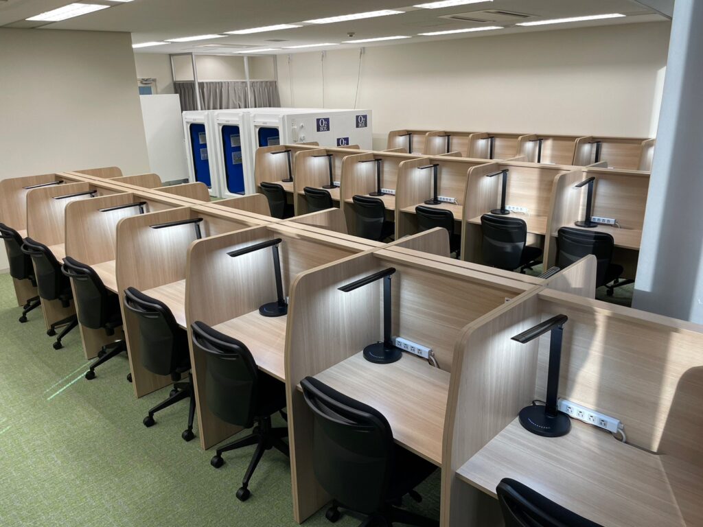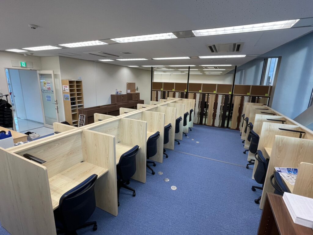 教室も机も広くて清潔感がありますね!隣が気にならないように仕切りがあるのも嬉しい。