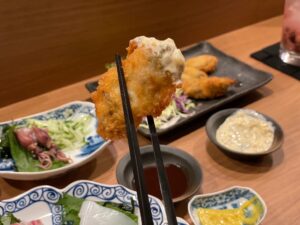 飲み屋に来たら絶対と言って良いほど頼むカキフライも、中の牡蠣が少し透けるくらいの衣でサクッと揚がり噛むとなかなか熱々の出汁が。