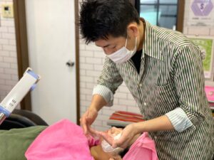 顔そりの後はオーナーの順平さんに代わりフェイシャルエステ💆