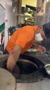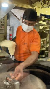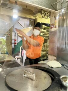 と思って夢中でパシャパシャしているとカメラに気遣って少し丁寧めにナンを焼き窯にペタッとくっつけてくれました。