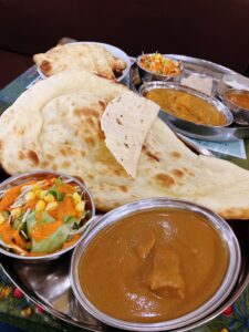チキンカレー・ナン・サラダ・スープ・パパドがついています!