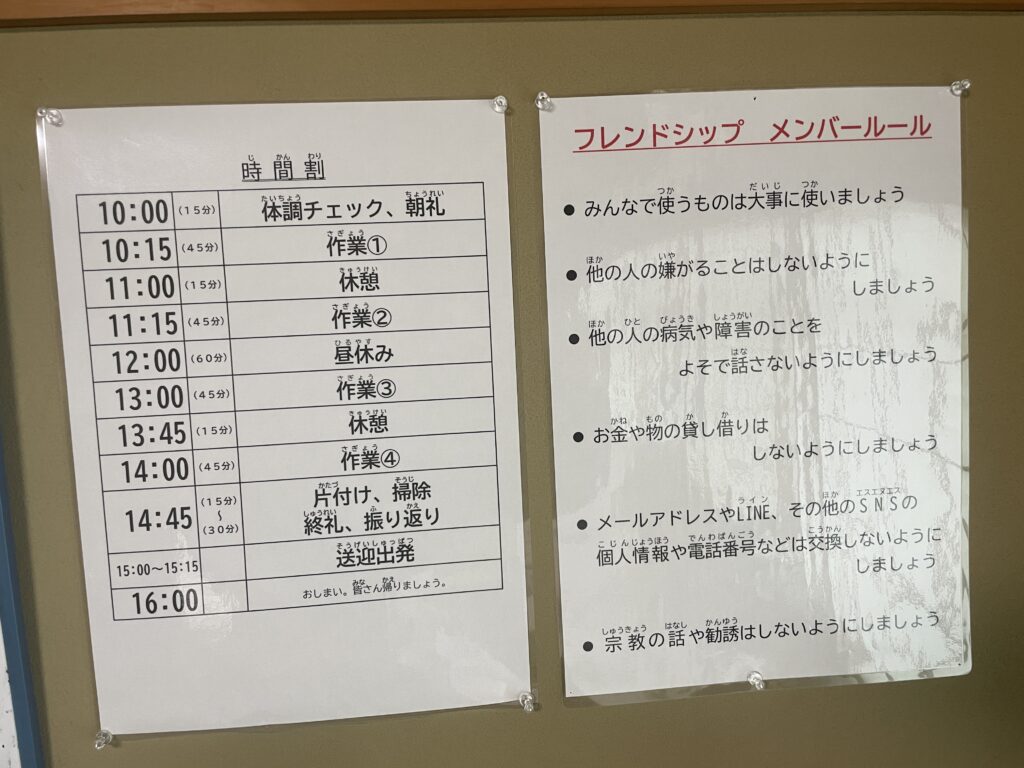 フレンドシップ内では時間割やルールがきっちり決められており、それに沿って行動しています。