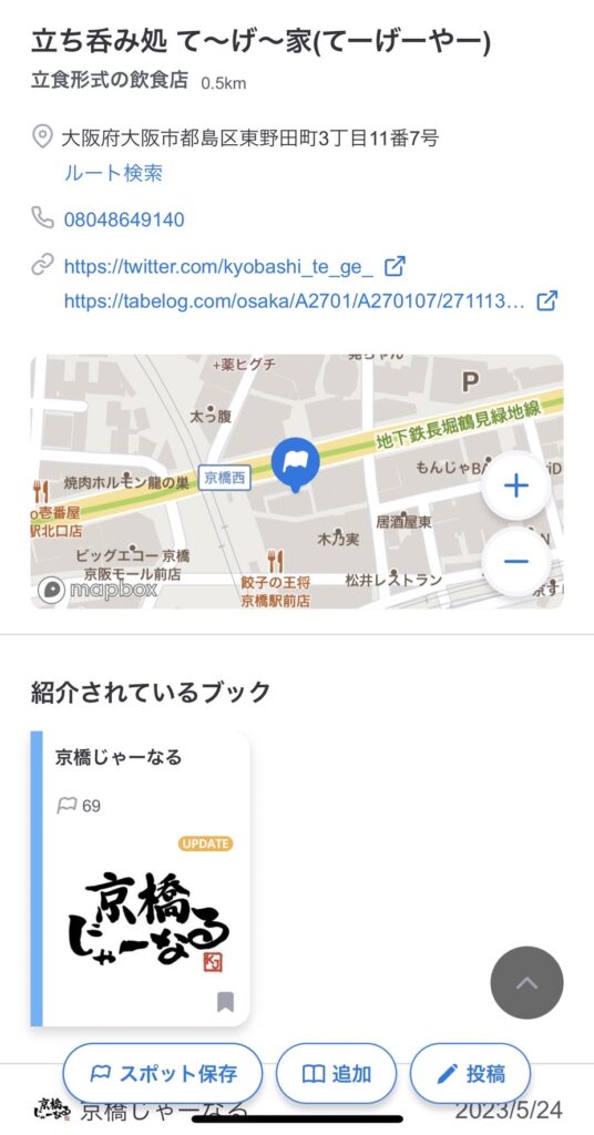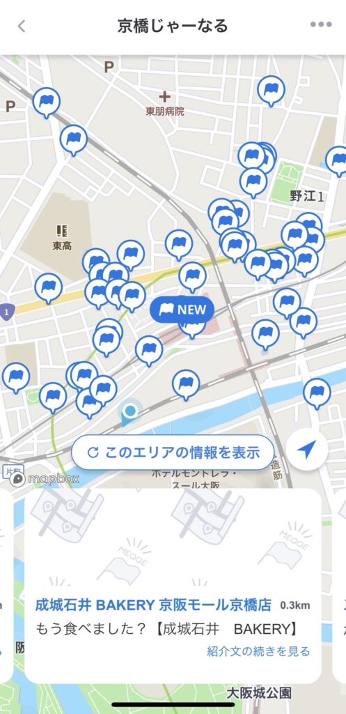 するとほら!こんな感じで今まで京橋じゃーなるが取材した飲食店が地図上に出てくるんです。