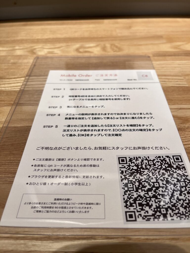 メニューは スマートフォンからの注文 でゆっくり悩めてそこもまたいいですよね!