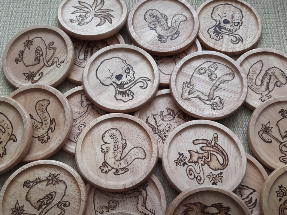 電熱ペンを使って木を焦がし、絵や模様を描けます!