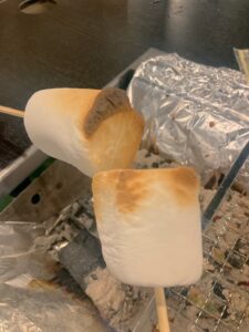 その横で、タムタム、いちか、みーほはマシュマロを焼いてチョコソースにディップして締めに向かっておりました(笑)