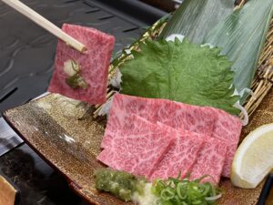 お肉の上にわさびにのせて醤油をつけて食べるのですが