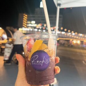 屋台の中でも珍しかったのがアサイーボウル。キンキンに冷えていて、たっぷりの蜂蜜がかかっていてすごく美味しかったです✨