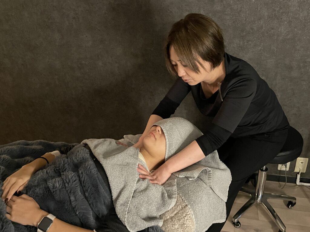 頭や目、おでこも丁寧にほぐしてもらいます。