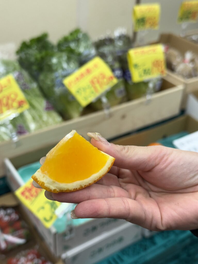 なめらかで果汁たっぷりのオレンジ「紅まどんな」の試食もいただきました!