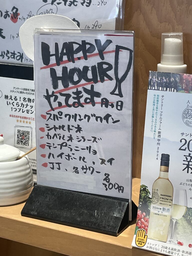 ハッピーアワーは対象のお酒がなんと各300円でいただけちゃいます!