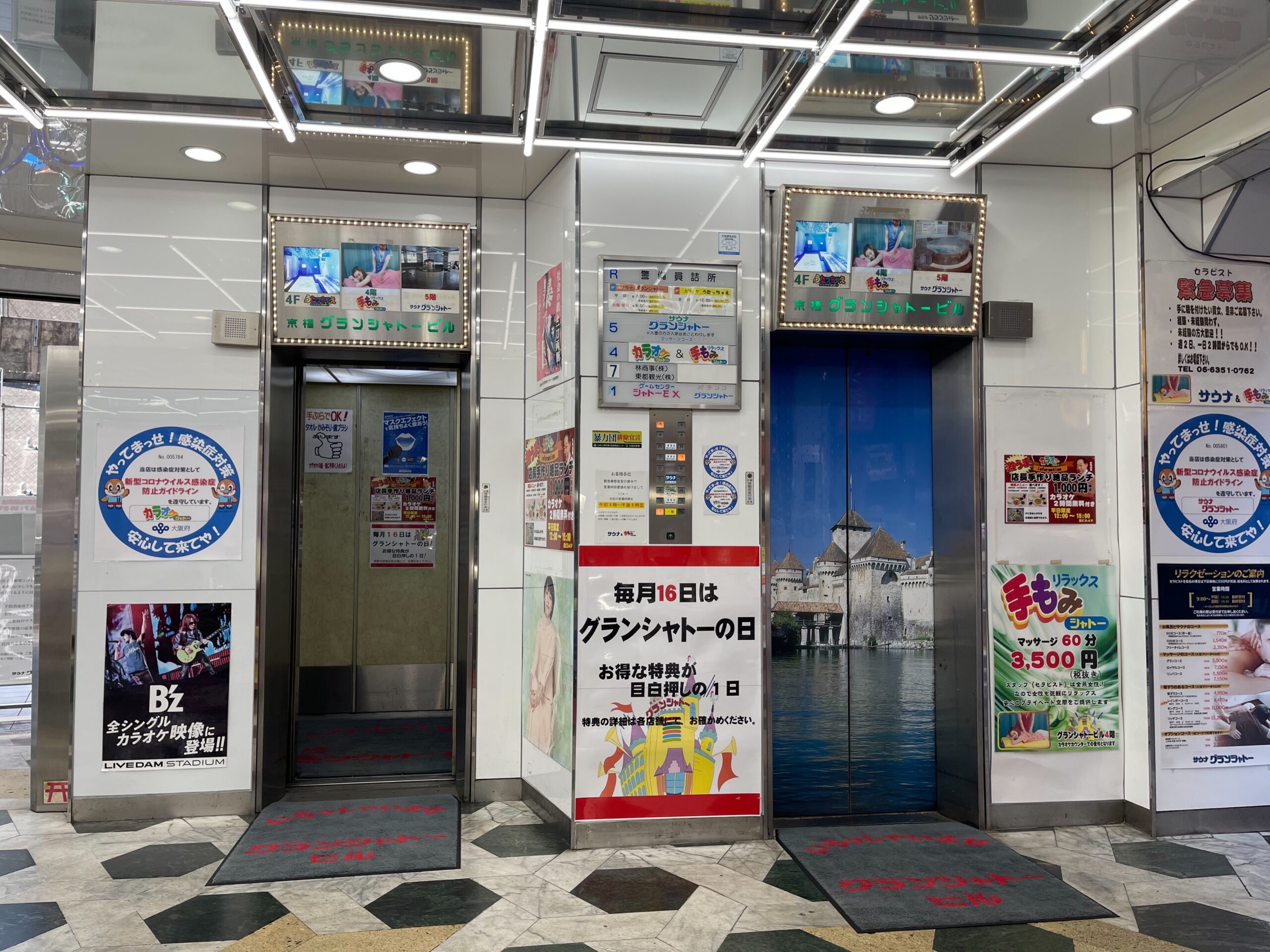 入り口は1階のゲームセンターの太鼓の達人があるところに、エレベーターが2基ありますのでそこから4階に上がってください。