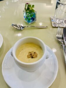 この日はさつまいものクリームスープで、お芋のやさしい甘みが感じられるお味でした🥄