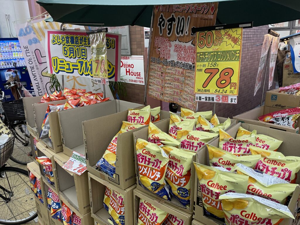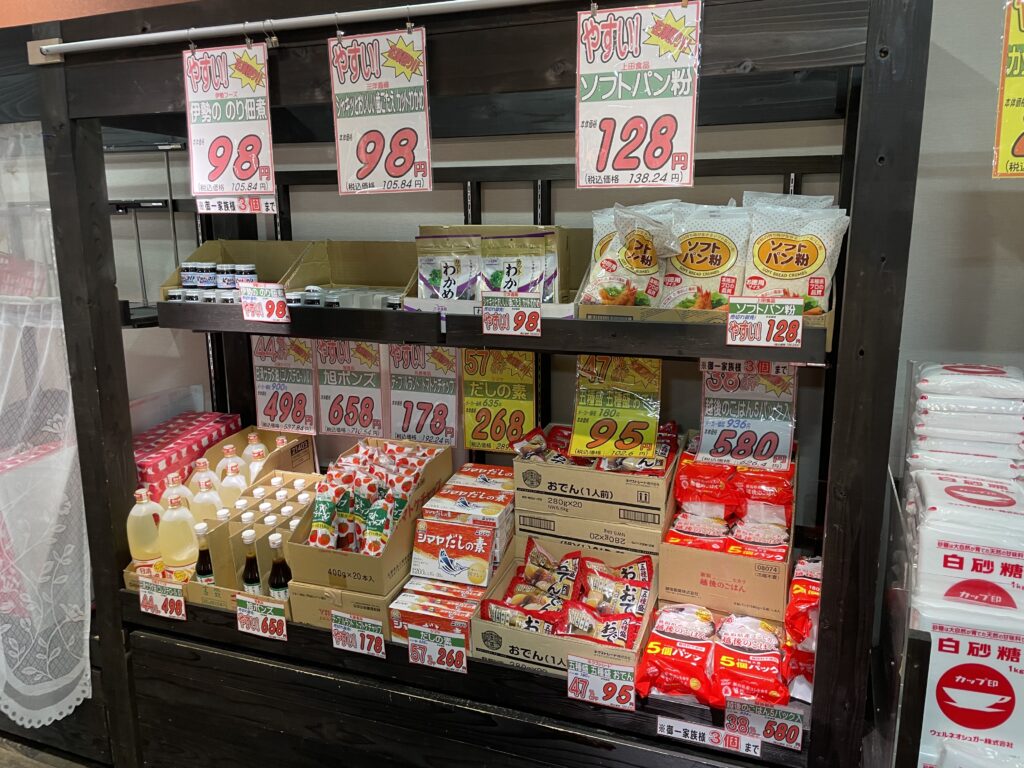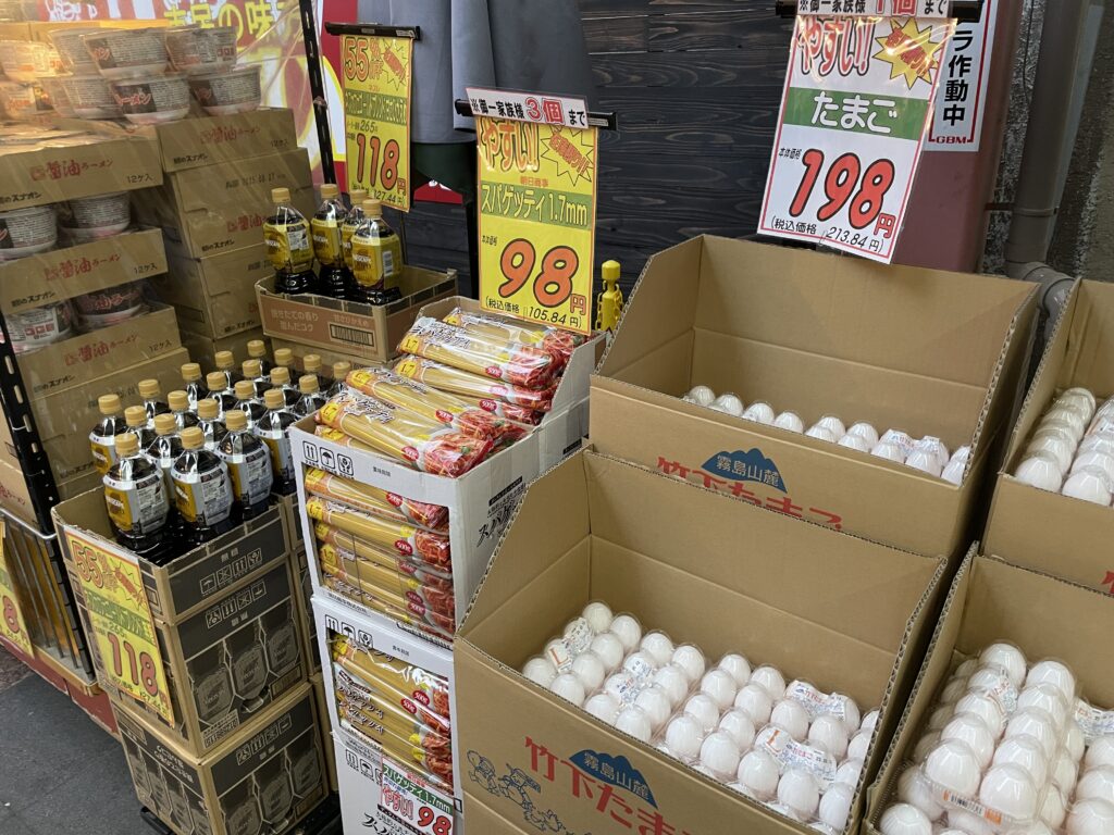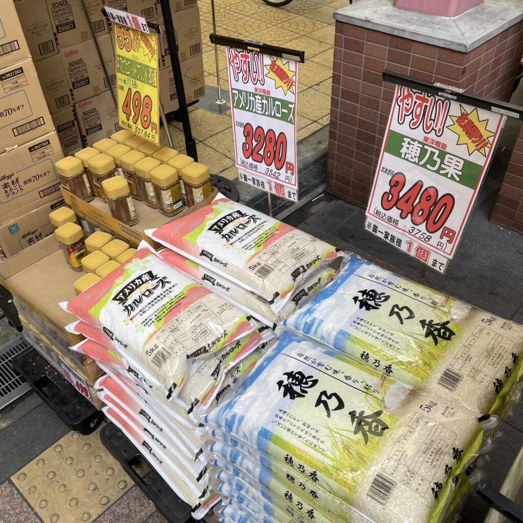 さらに!お菓子だけじゃなく、食料品も陳列されました!!お米や卵まで置いてます。お米も卵も安いし助かる〜😁