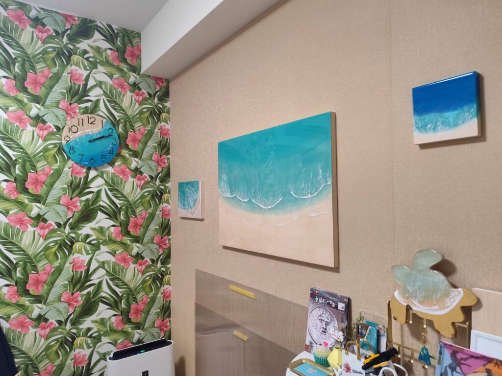 ハワイアンテイストの明るい空間で、講師のtomoko先生が〈ポーセラーツ〉と〈海のレジンアート〉の世界へ案内してくれます🎨✨