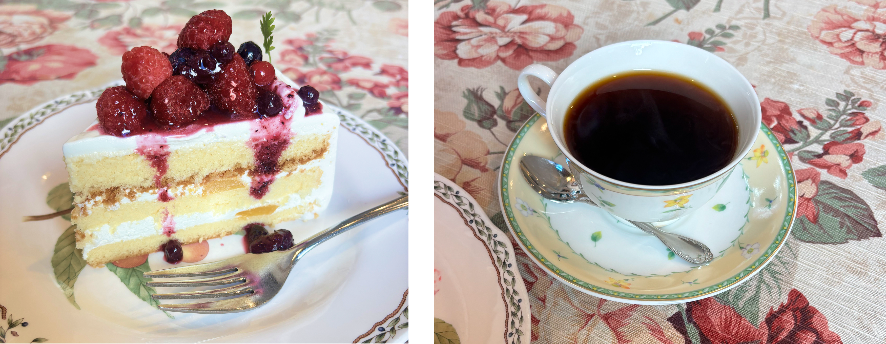 ケーキもコーヒーも丁寧で、互いを引き立て合う組み合わせ。