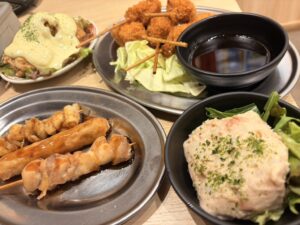ポテトサラダ、まぐたく、チキン南蛮、串カツ・焼き鳥盛り合わせなどなどたくさん注文しましたが、どれも美味しかったです😋😋