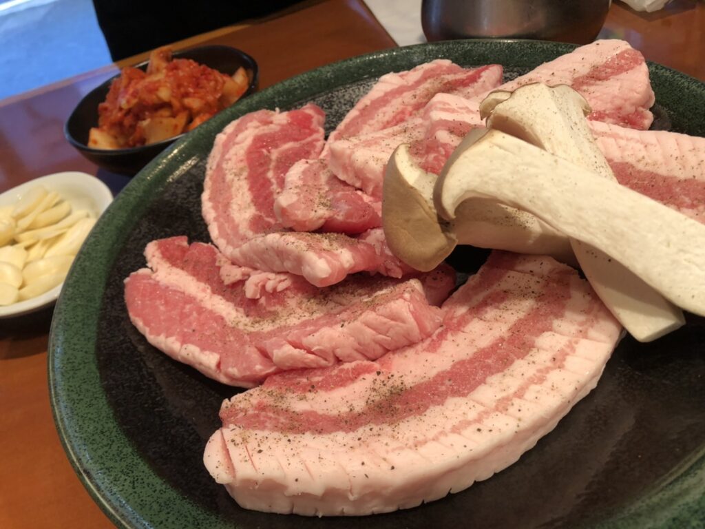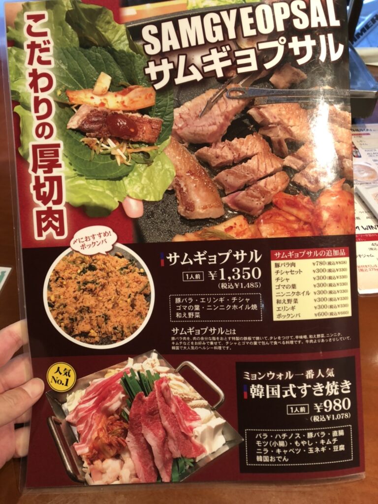 で、とりあえずサムギョプサルを注文!一人前1350円とお値段もリーズナブル!